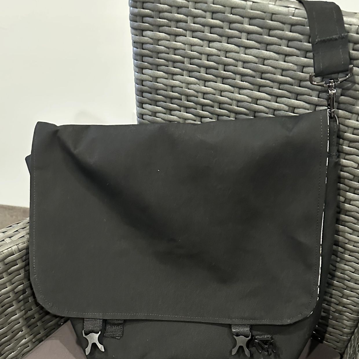 Messenger bags are 12" x 13" x 5" with flap clasp, adjustable strap, interior pockets and a zipper pocket. Need more customization? Send us an email