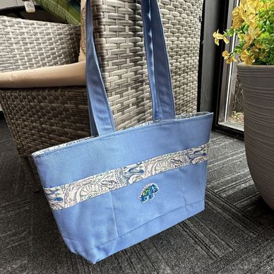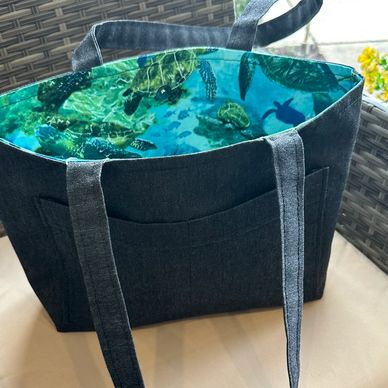 Sea Turtles, starfish and excitement with a zipper pocket interior. Slate fabric exterior.